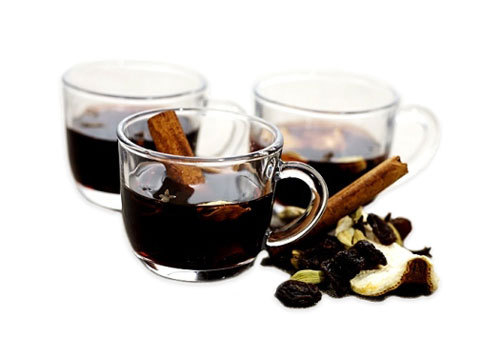in Denmark along with a hot punch called glögg made of red wine, a squeeze of brandy or snaps and with rains and pieces of almond in it.